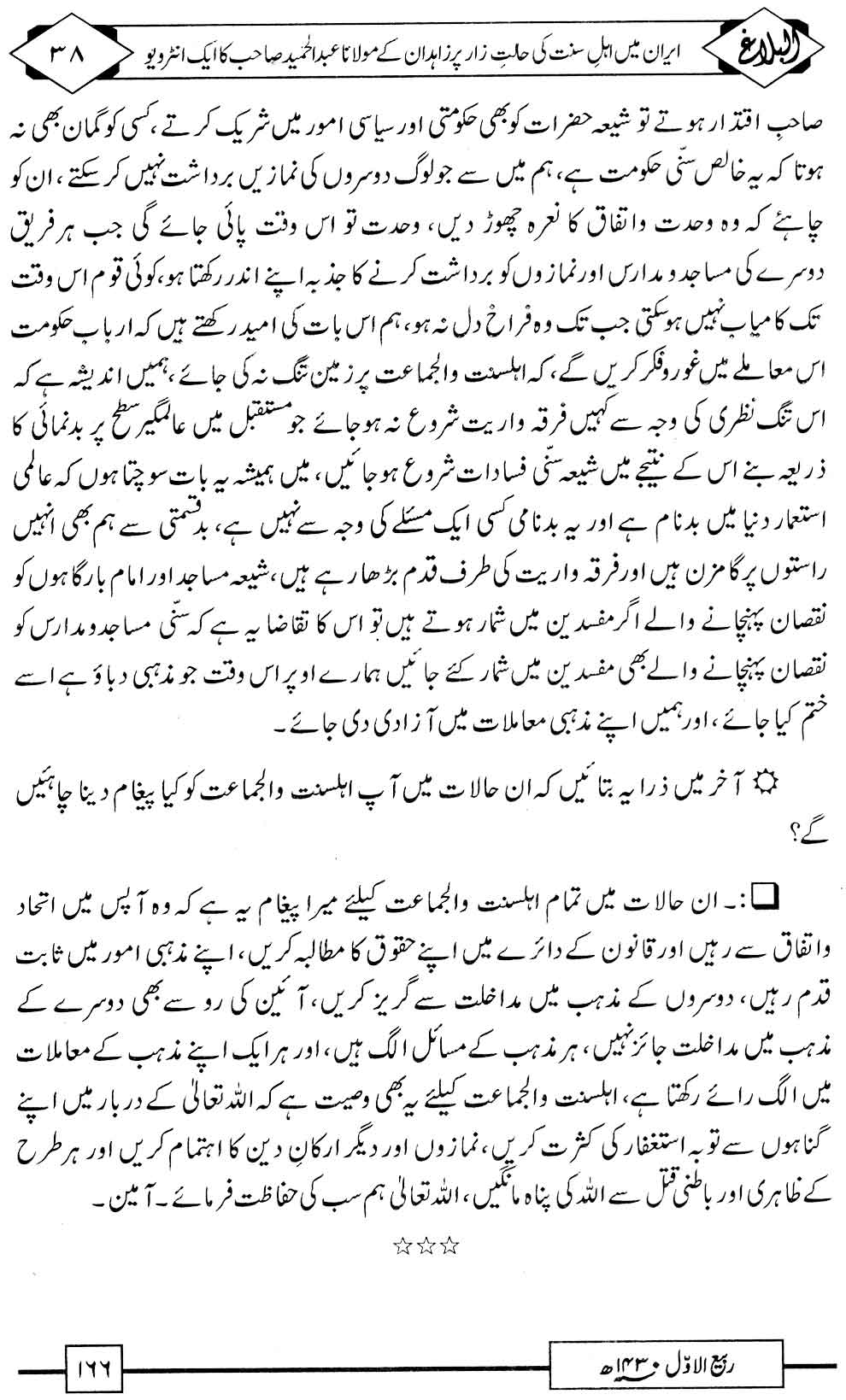 Monthly Albalagh Rabi ul Awwal 1430 / march 2009