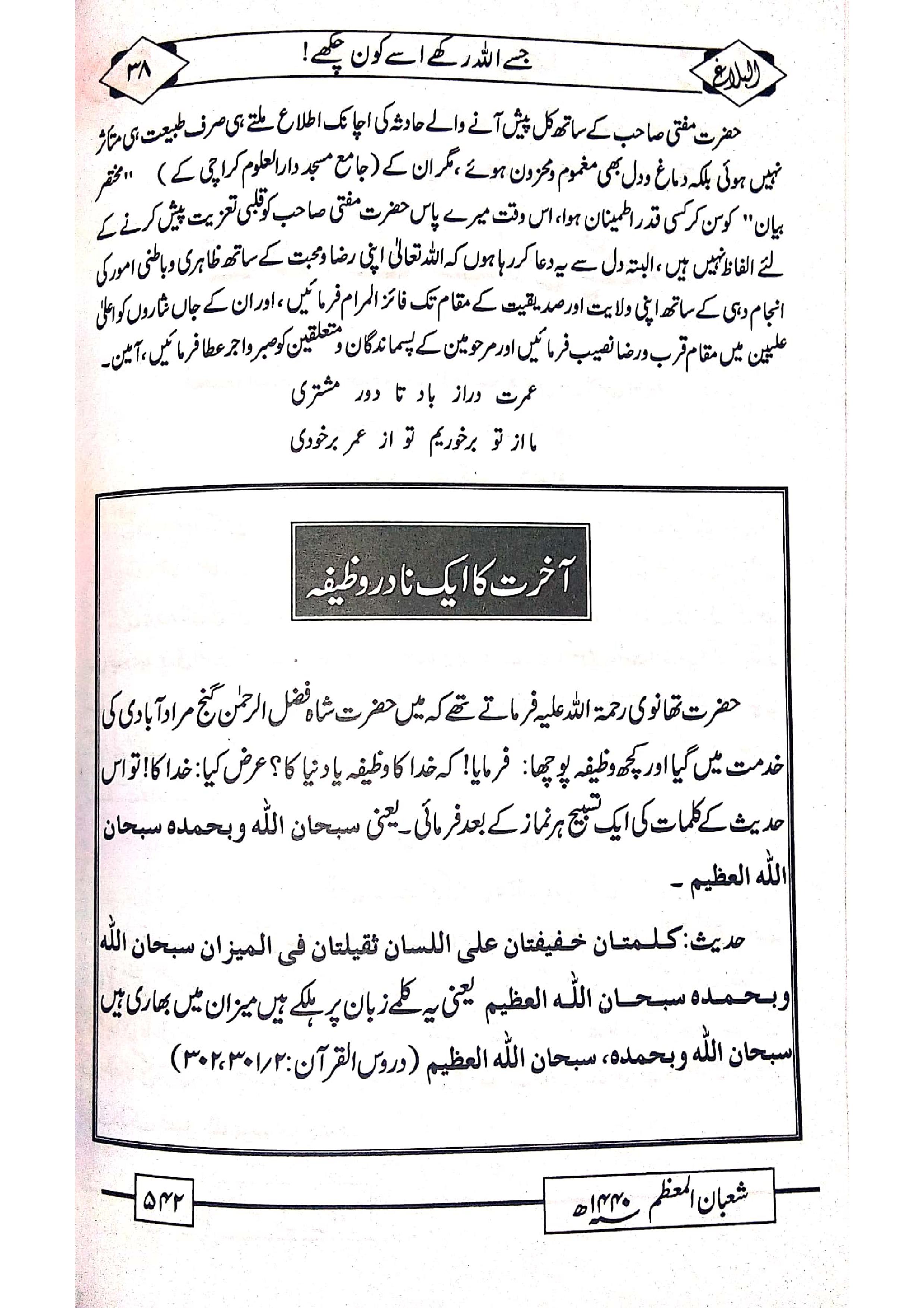 Monthly Albalagh Shaban ul Muazzam 1440 / april 2019
